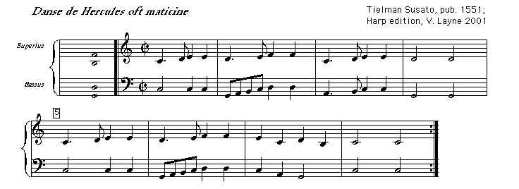 Solos & Duets for Folk Harps from Tielman Susato's Work of 1551 A.D. with the original harmonies retained.